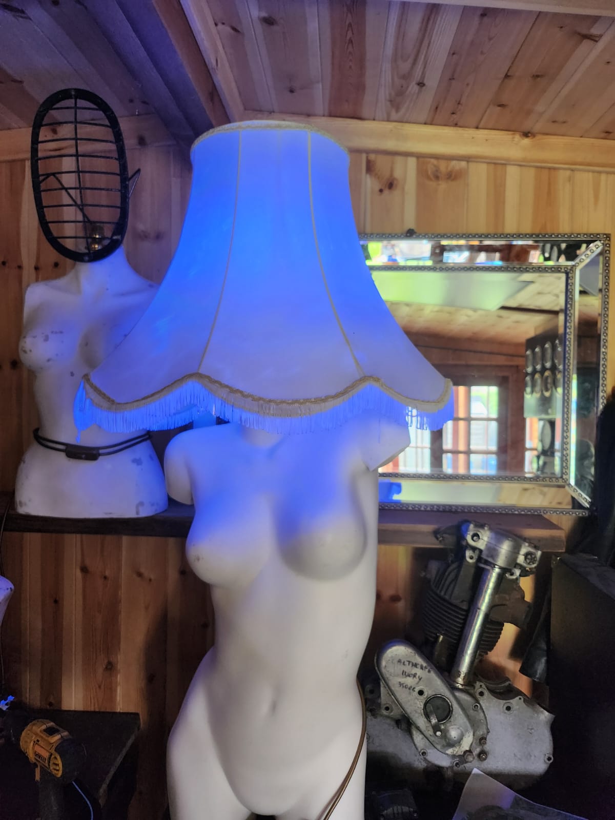 distressed mannequin and vintage shade