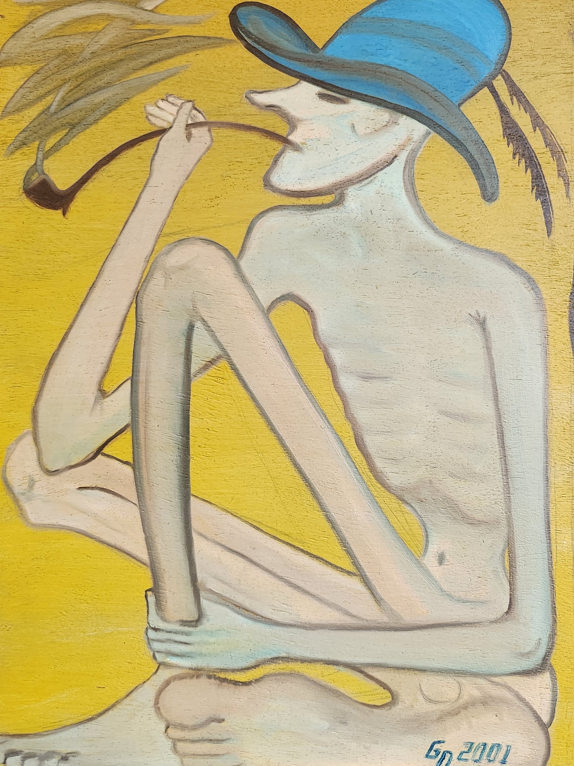 Original painting on plyboard, framed, picture size hight 58cm width 44cm